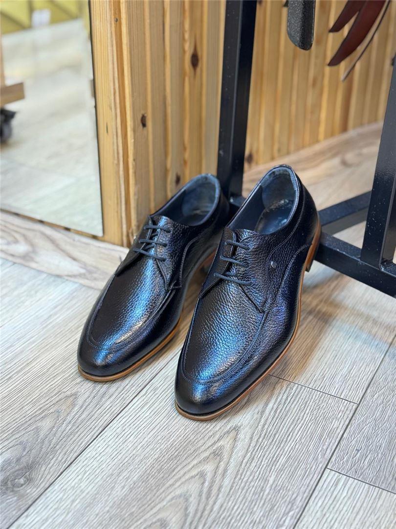Bağcıklı Yumuşak Deri Klasik Ayakkabı (0254-Siyah Floter-38)
