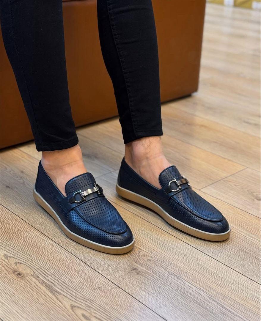 Hakiki Deri Günlük Tokalı Casual Ayakkabı (1412-Lacivert-40)
